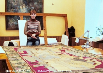В субботу, 14 июля, на вечернем богослужении в Успенском соборе Смоленска Патриарх Московский и всея Руси Кирилл вручил высокие церковные награды смолянам, которые внесли особый вклад в развитие церковной жизни на Смоленщине. Среди награжденных была Жанна Смирнова, художник-реставратор Смоленского государственного музея-заповедника. Она была награждена медалью преподобного Андрея Рублева II степени. Награда для Жанны - Жанна Сергеевна, за что патриарх Кирилл наградил вас медалью? - Наверное, за долгосрочное сотрудничество. Мы начали его еще в 2007 году, когда он был митрополитом Смоленским и Калининградским. Тогда мне поручили реставрацию одной из главных смоленских святынь - плащаницы «Положение Иисуса Христа во гроб», выполненной теткой царя Ивана Грозного Ефросиньей Старицкой. Изначально ее хотели реставрировать в Москве, но было жесткое условие епархии - не вывозить плащаницу из Смоленска. Специалистов-реставраторов по тканям у нас почти нет, поэтому работа досталась мне. Потом я реставрировала некоторые из облачений патриарха. Они очень древние - XIX века. При этом пару раз в год патриарх надевает их во время службы. Одно облачение состоит из нескольких частей: их надо расшить, отреставрировать, а потом сшить как можно ближе к оригинальным швам. На реставрацию одного из них я потратила два года - весь второй декретный отпуск. Тем не менее награда патриарха для меня очень ценна, она мотивирует работать и совершенствоваться. Соборная плащаница - Какие трудности возникали при реставрации плащаницы? - Самая большая сложность - это ее возраст. Она была изготовлена еще в 1561 году, долгое время находилась в Успенском соборе Московского Кремля и только в 1812 году попала в Смоленск, когда ее отбили у французов, увозивших святыню в обозе с награбленными ценностями. Кстати, на ней есть соответствующая вкладная надпись. Плащаница очень большого размера - два на три метра. Как оказалось, в конце XIX века ее уже реставрировали, тогда всю вышивку XVI века переложили на новый фон. Как правило, фон делается из шелка, а этот материал очень легко разрушается со временем от воздействия внешних факторов. Все шитье я почистила, и мы уложили его на новый реставрационный фон. Для этого пришлось пришивать его тончайшими нитями, стежками по одному - два миллиметра. При этом реставрировала я ее в епархии, там мне выделили помещение, сдвинули четыре дубовых стола. Приходила туда каждый день после работы на три часа в течение полутора лет. Интересно, что поручил мне работу митрополит Кирилл, а принимал - уже патриарх Кирилл. Он был очень доволен результатом. - С какими еще интересными предметами старины вам доводилось работать? - Я работаю в музее-заповеднике с коллекциями древнего шитья. Основная моя задача - подготовка вещей к выставкам. Вещей много, а реставраторов у нас мало, поэтому не всегда удается подготовить все. Мне очень понравилось работать с коллекцией головных уборов из собрания княгини Тенишевой. Также реставрировала еще три маленькие плащаницы, которые находятся в соборе, но выносят их на всеобщее обозрение только по праздникам. Работа у нас очень интересная, ведь необычно сознавать, с какими древними вещами ты работаешь. Но, откровенно говоря, зарплата маленькая - всего 4300 рублей. Хлеб художника - Как вы стали реставратором? - Я окончила худграф н