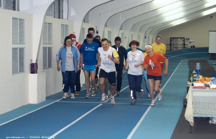 – Это была моя затея 11 лет назад. Но тогда меня как-то никто не поддержал, и я одна здесь (манеж был старый, темный, сейчас здесь более радостные цвета) бежала с 28 на 29 декабря, штурмовала сутки. Кто-то присоединялся ко мне на час, два, три, но не более того. В общем, сначала не могла никак собрать людей, но потом они начали потихонечку приобщаться, – вспоминает Светлана Хисамутдинова. – Раньше мы бегали перед новым годом, чтобы пробежаться, потом отдохнуть и встретить Новый год. А в прошлом году приехал Юра Москалев и предложил пробежаться именно в новогоднюю ночь. Это была его инициатива: вместе Новый год отметить, без шампанского и оливье, но в хорошей компании, получая радость от преодоления себя. Так в прошлом году мы положили начало нашему новогоднему бегу. А в этом году нам удалось уже собрать участников из Калининграда, Санкт-Петербурга, Коврова, Москвы и Белоруссии.