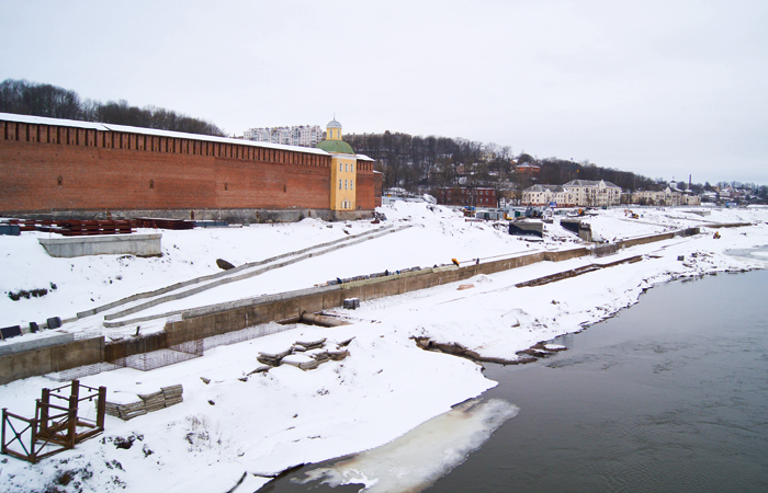 На главной юбилейной стройке - набережной великой русской реки Днепр в Смоленске продолжаются работы.