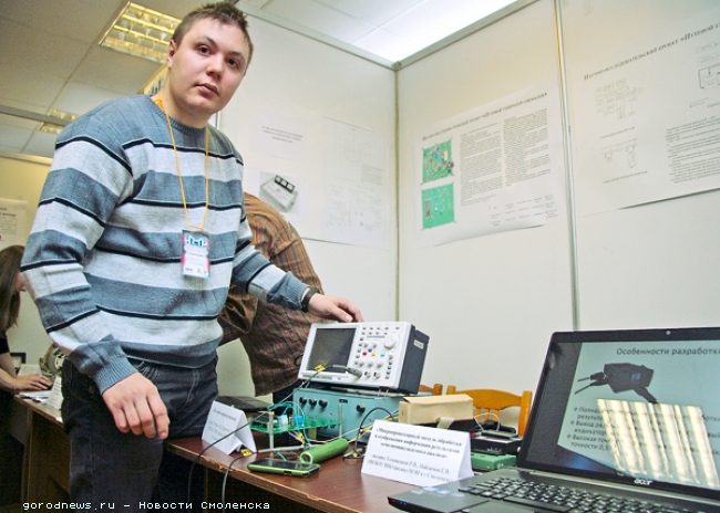 Более сотни молодых людей в возрасте от 14 до 30 лет представили свое видение завтрашнего дня. Не исключено, что среди них и будущие изобретатели с мировыми именами, детища которых изменят нашу жизнь. Пока же ученым предстояло доказать уникальность и нужность своих изобретений здесь - в Смоленске. И сейчас - на областной выставке-ярмарке научно-технического творчества молодежи (НТТМ), которая состоялась на прошлой неделе в филиале Московского энергетического института. Организатором мероприятия выступила администрация Смоленской области. Выставка стала уже четвертой по счету. Как и предыдущие, она была отмечена необычными проектами и техническими новинками. Слово «ярмарка» в названии появилось не случайно. Ведь выставка - это не просто платформа, где можно рассказать о своих открытиях, но и место, где их можно предложить. Например, как показал опыт прошлых лет, после выставки некоторым студентам поступили предложения о работе и дальнейшей поддержке в научной деятельности. «Робосапиенс» На выставке юными учеными были представлены 72 научных проекта. Чтобы описать каждое изобретение и результаты проведенных исследовательских работ, не хватит и всей статьи. Поэтому остановимся на тех, что показались (на наш непрофессиональный взгляд) наиболее любопытными и интересными. Например, трехколесный робот, созданный студентами филиала МЭИ в Смоленске. По словам ребят, такой робот может найти широкое применение в быту или даже в промышленности. С помощью уже готовой платформы можно создать робота, патрулирующего помещения, или, при установке манипуляторов, использовать его в качестве домашнего помощника для людей с ограниченными возможностями (уже сейчас робот может поднять груз до двух килограммов). Его можно использовать и как развивающую техническую игрушку, а прикрепив гусеничное шасси, приспособить и для работы вне помещения. Управляется робот с помощью радиосигнала как с компьютера, так и с пульта, а сама сборка не требует больших денежных затрат. Не менее интересным нам показался еще один проект от инженерного центра МЭИ - технология обработки семян хвойных деревьев при помощи лучевой установки. Студенты научно доказали, что их приспособление увеличивает скорость прорастания и всхожести семян, увеличивает длину корешков проростков. При всем этом система экологически безопасна. По их словам, технология способна улучшить качество и скорость лесовосстановления, а также дать экономический эффект - дополнительный прирост древесины и сокращение расхода семян. Будет удовлетворен, по расчетам изобретателей, и спрос населения на елки и сосны в канун Нового года. «Большой брат» Довольно много проектов на выставке было представлено курсантами Смоленской военной академии. Один из них - необычная система видеонаблюдения, которую корреспонденту «АиФ-Смоленск» презентовал курсант Сергей Котов. «Это система обнаружения и захвата объектов на неоднородном фоне, - с гордостью рассказывает Сергей. - Простыми словами - эта камера может фиксировать только объекты, находящиеся в движении, автоматически убирать помехи в виде дождя, тумана, снега. За счет этого видео занимает очень мало памяти - сохраняются только те моменты, где было движение. Применение может быть как в военных целях, так и на «гражданке», в охранных системах и видеофик