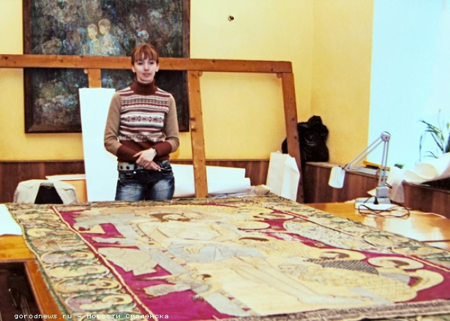 В субботу, 14 июля, на вечернем богослужении в Успенском соборе Смоленска Патриарх Московский и всея Руси Кирилл вручил высокие церковные награды смолянам, которые внесли особый вклад в развитие церковной жизни на Смоленщине. Среди награжденных была Жанна Смирнова, художник-реставратор Смоленского государственного музея-заповедника. Она была награждена медалью преподобного Андрея Рублева II степени. Награда для Жанны - Жанна Сергеевна, за что патриарх Кирилл наградил вас медалью? - Наверное, за долгосрочное сотрудничество. Мы начали его еще в 2007 году, когда он был митрополитом Смоленским и Калининградским. Тогда мне поручили реставрацию одной из главных смоленских святынь - плащаницы «Положение Иисуса Христа во гроб», выполненной теткой царя Ивана Грозного Ефросиньей Старицкой. Изначально ее хотели реставрировать в Москве, но было жесткое условие епархии - не вывозить плащаницу из Смоленска. Специалистов-реставраторов по тканям у нас почти нет, поэтому работа досталась мне. Потом я реставрировала некоторые из облачений патриарха. Они очень древние - XIX века. При этом пару раз в год патриарх надевает их во время службы. Одно облачение состоит из нескольких частей: их надо расшить, отреставрировать, а потом сшить как можно ближе к оригинальным швам. На реставрацию одного из них я потратила два года - весь второй декретный отпуск. Тем не менее награда патриарха для меня очень ценна, она мотивирует работать и совершенствоваться. Соборная плащаница - Какие трудности возникали при реставрации плащаницы? - Самая большая сложность - это ее возраст. Она была изготовлена еще в 1561 году, долгое время находилась в Успенском соборе Московского Кремля и только в 1812 году попала в Смоленск, когда ее отбили у французов, увозивших святыню в обозе с награбленными ценностями. Кстати, на ней есть соответствующая вкладная надпись. Плащаница очень большого размера - два на три метра. Как оказалось, в конце XIX века ее уже реставрировали, тогда всю вышивку XVI века переложили на новый фон. Как правило, фон делается из шелка, а этот материал очень легко разрушается со временем от воздействия внешних факторов. Все шитье я почистила, и мы уложили его на новый реставрационный фон. Для этого пришлось пришивать его тончайшими нитями, стежками по одному - два миллиметра. При этом реставрировала я ее в епархии, там мне выделили помещение, сдвинули четыре дубовых стола. Приходила туда каждый день после работы на три часа в течение полутора лет. Интересно, что поручил мне работу митрополит Кирилл, а принимал - уже патриарх Кирилл. Он был очень доволен результатом. - С какими еще интересными предметами старины вам доводилось работать? - Я работаю в музее-заповеднике с коллекциями древнего шитья. Основная моя задача - подготовка вещей к выставкам. Вещей много, а реставраторов у нас мало, поэтому не всегда удается подготовить все. Мне очень понравилось работать с коллекцией головных уборов из собрания княгини Тенишевой. Также реставрировала еще три маленькие плащаницы, которые находятся в соборе, но выносят их на всеобщее обозрение только по праздникам. Работа у нас очень интересная, ведь необычно сознавать, с какими древними вещами ты работаешь. Но, откровенно говоря, зарплата маленькая - всего 4300 рублей. Хлеб художника - Как вы стали реставратором? - Я окончила худграф н
