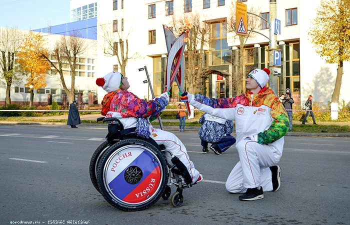 Так, на проспекте Гагарина эстафету приняла Анастасия Толчева. 16-летняя спортсменка и поэтесса из города Гагарин ничем не отличается от своих сверстников, правда, передвигается Настя только в инвалидной коляске.
